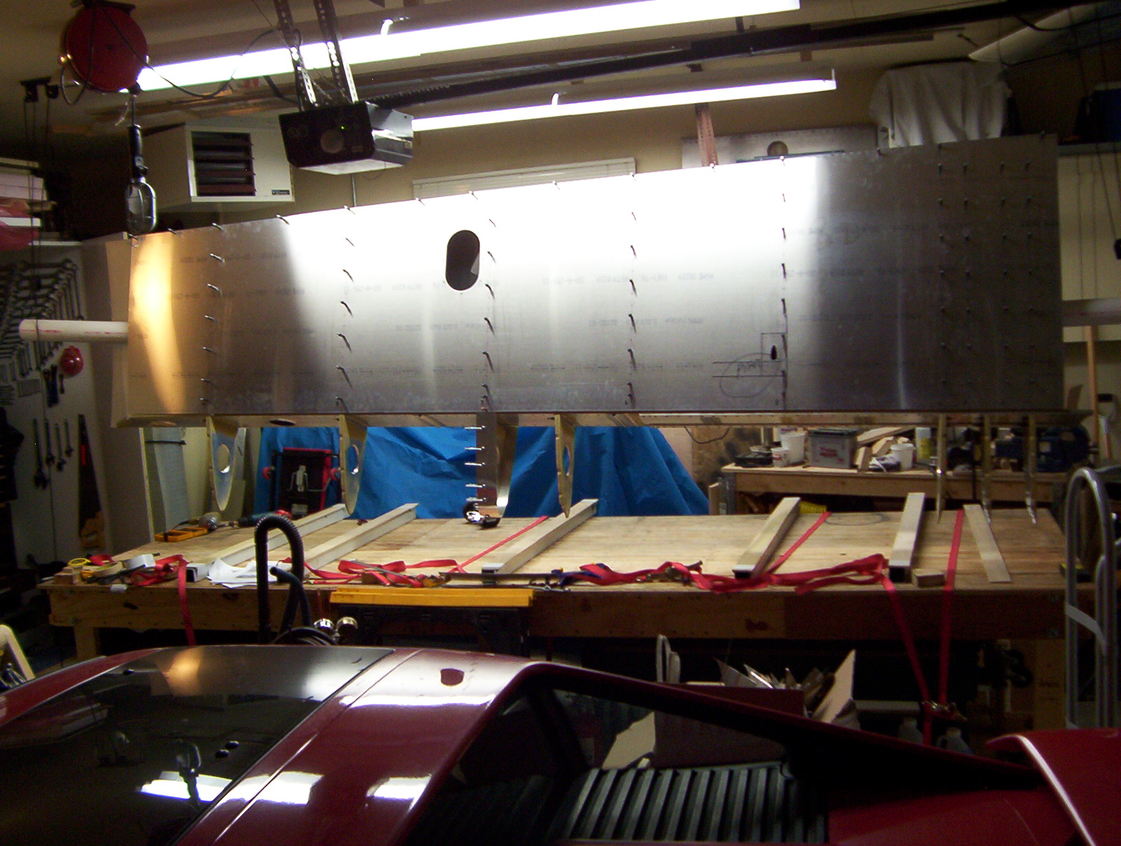 Got a 14 foot long piece of 3" SCH 40 PVC and rigged up a block & tackle to raise and flip the wing. The PVC fits right through the lightening holes and the block & tackle is a bicycle lift (has a brake to hold the height) that wasn't being used. The wing turns real easy but needs a counter balance to level it out for lowering / raising. Can be done by one man now.