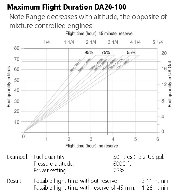 But at 75 % any atmospheric 100 hp engine will burn about 22-24 L/hr at