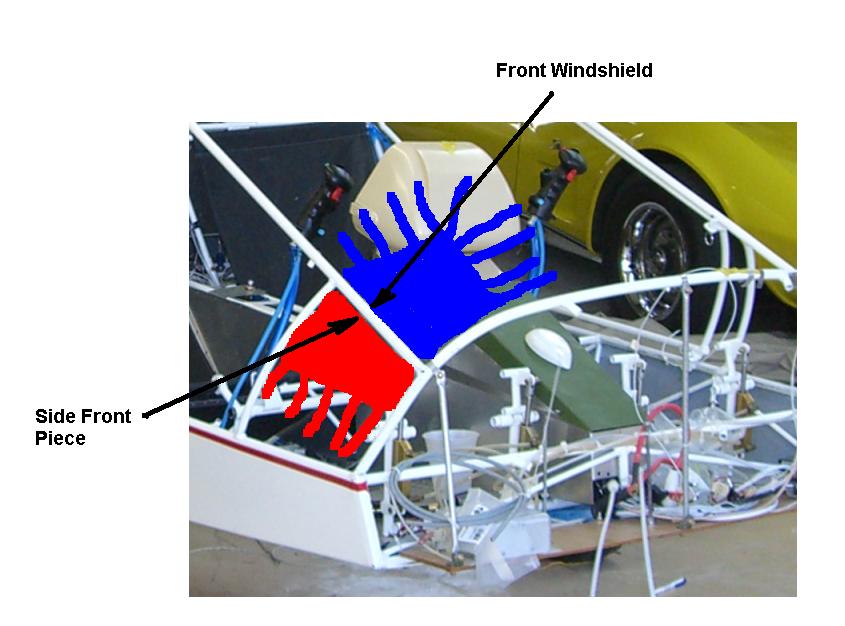 I installed the side window temporary then overlapped the windshield and used one row of rivets to attach both to the tubing.