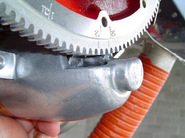 of the outside aft edge of the flywheel and looks like either the