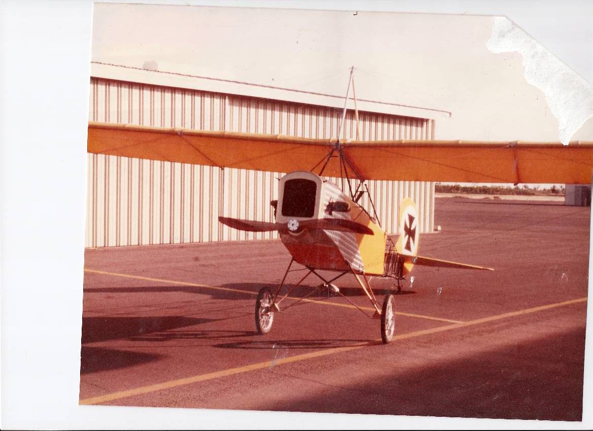 There has been a lot of talk about first flights--- what about early projects? I just got a new scanner today and have been messing around with it and thought you all might like to see some old projects. I know some of you guys had Hummers like Richard Pike. I built 3 hummers in 78 to 80 I flew Clouse Hills original hummer and talked to Dom Williams to day he still has it. Back then I put a gear reduction a friend and I made with a 3 to 1 reduction turning a 54’ prop. We had a Polaris engine on the second hummer and it flew like a dream. The 3rd hummer I built I got ailerons from a drifter made a mixer to keep the v tail. <![endif]--><![if !vml]>[img]cid:image002.jpg(at)01C6ADC8.BDA2DEF0[/img]<![endif]>Here is a picture of my 4th airplane project, it has a welded frame the back is cable braced the turtle deck and mid top is mahogany the engine cowling is engine turned aluminum, the fuse is covered with seconite ( can’t remember how to spell it) it had an industrial Koler 65HP water cooled engine with one of the aforementioned reduction units. Instead of ailerons I used wing warping, man lots of stick pressure! the prop in the picture is an aqua prop the wheel hubs were from a moped with 24in bicycle rims laced to them. I engineered built and test flew this project there were no plans or kit.