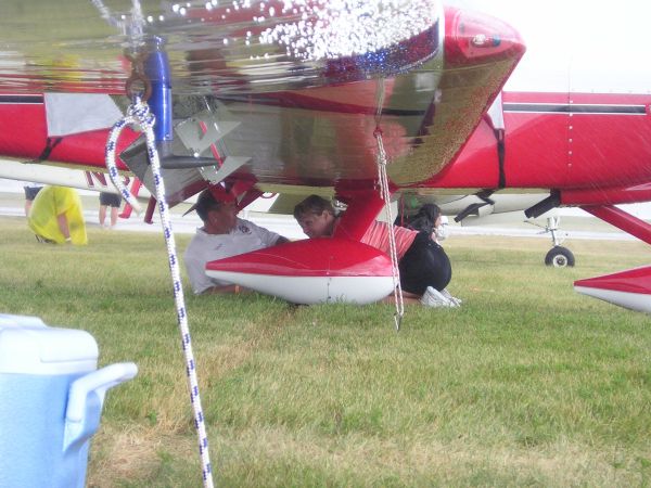 We scrambled under the plane, getting dripped on by