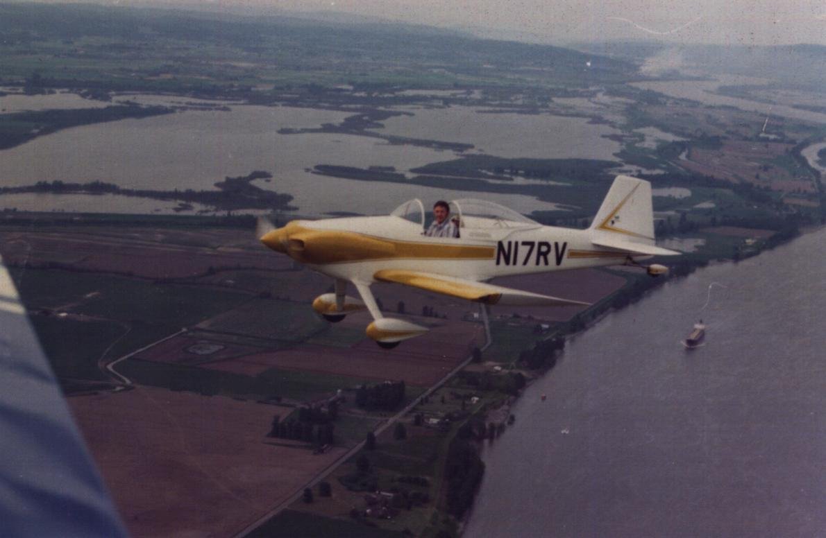 Where did you get that picture? I took that picture in about 1971 of Van in his RV-3 flying along side of my VW powered Chris Tena Minicope. I was inspired to build a RV when Van would come by me and do loops around me. I knew that someday I would build an RV. Well it took till 1987 for me to start and 1989 to make the first flight but I am still flying my RV-6 18 years later. I see people with high times but I only have about 1200 hours on mine in 18 years.