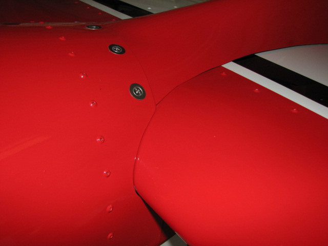 A week back there were many posts about fitting the Stb. with the rear skin in place. Some said it could be done and others said no way. I wrote in about my HDS and a friends HD and said both Stabs. could be put on with the rear skin on. Both were build just like the plans said. Tape was put on the rear skin inside the cut-out to keep the paint from scratching. The Stab. was slid in place at a slight up-right angle and then lowered in place. It takes two people and a little bit of care. I said when I get out to the airport I would take some pictures of our planes. (See attached pics.)