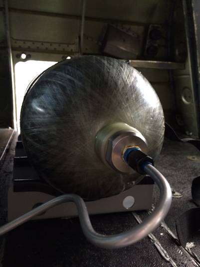 Quote: | Here is the tank installed. Stock tank is still in airplane, since I'm testing and didn't feel like taking out smoke system and battery. Can still get items in through port side door. Tank can be removed in about 2 minutes. Filled up and ready to test. I turned up my pressure relief valve since there is no fear of overfilling system now. Nice to have the extra reserve air.