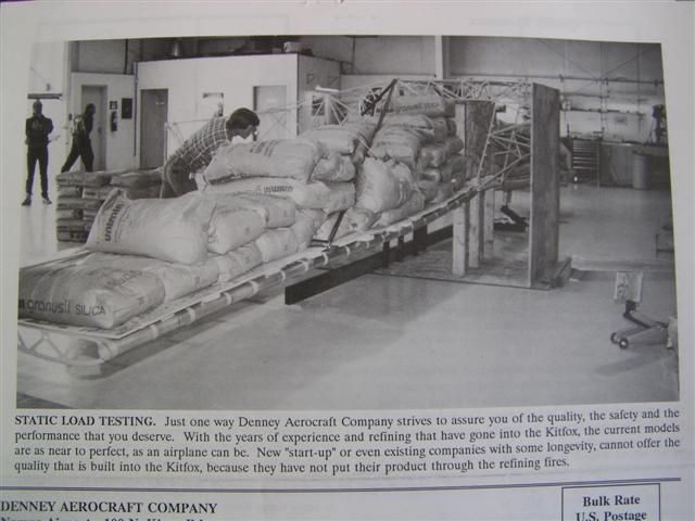 more pictures of load testing at www.kitfoxaircraft.com/Aircraft%20Kits.htm or log on to Kitfoxaircraft.com and click on aircraft kits then at the bottom click on testing information. Looks like the same picture but there are several more.