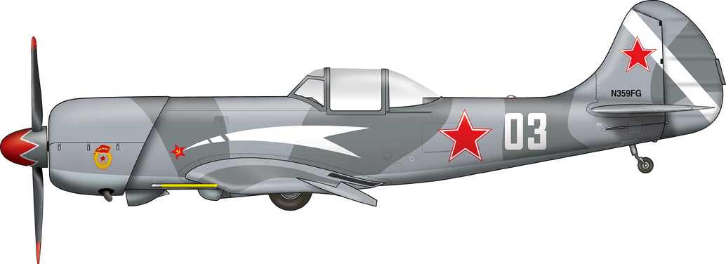 Here are a few schemes I am considering: Both are copied from existing airplanes. The first being a Yak-9 somewhere in France and the other a La-9 from the Breitling group.