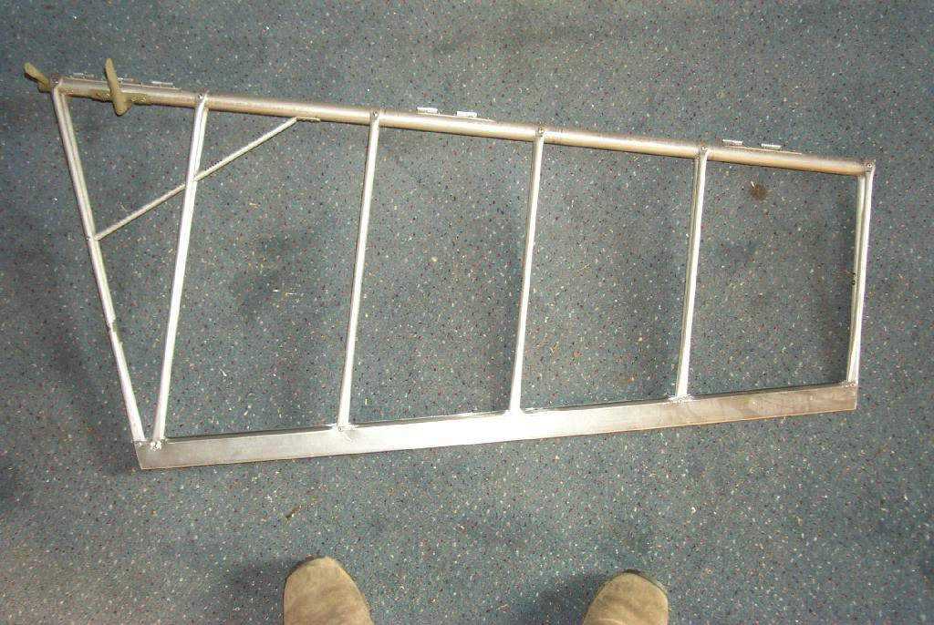 Somewhat later, after banging my head, again, on the fuselage weldment of the Cumulus that hangs from the ceiling of the garage, it occured to me that the empennage components could be welded 4130 just as well as riveted aluminum. The cumulus tail feathers are welded, not a pop rivet in sight. Even the hinges are welded to the structures.