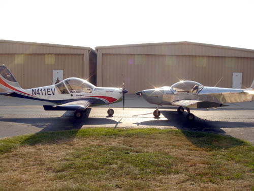 I flew 10 hours and 100 landings in an Evector SportStar that was for rent locally. I was able to fly it to my home airport for the extensive pattern work (including simulated engine out in the pattern, landing on the adjacent grass field) and I feel it was a good choice. Roger at Zenith suggested getting time in something light with quicker responses than "Wichita Spam Cans". The Sportstar is Rotax powered with split flaps but it is very similar to the XL. Attached is a nose to nose comparison pic I took of the Sportstar and my XL before its first flight in November. My inspector is also an EAA flight advisor and he agreed the Sportstar is a good choice. I still went to Mexico and flew with Roger in the factory XL one last time before I flew. I don't know how I could have been more prepared. First flight was uneventful. The 601XL is a very nice flying plane and if you can confidently fly a Cessna 150/152, you'll have no problem - except getting the smile off your face! Good Luck!
