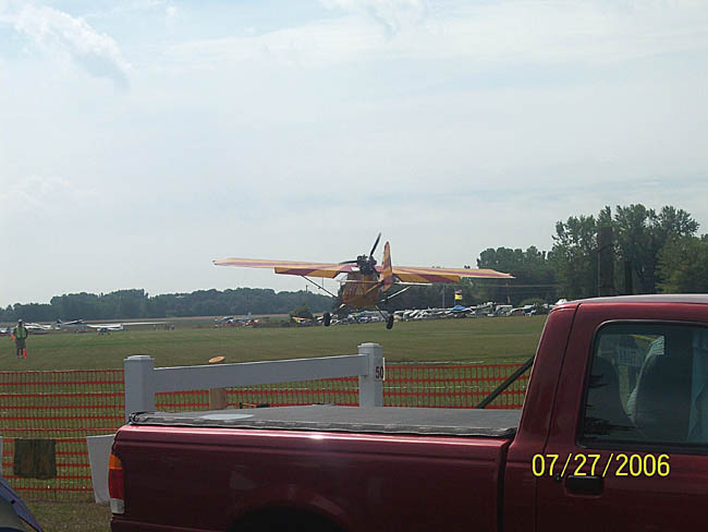 I snapped this picture last summer at Oshkosh just after John passed over the top of me and almost blew my hat off.
