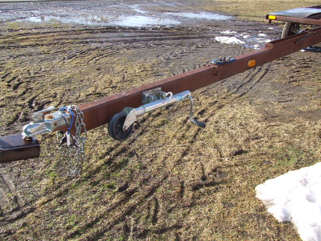 Now to the front. I bolted, rather than welded my hitch in place in case I needed to replace it. The stand is available at Northern or any trailer or boat store. Walmart could be a source too. This is bolted in place also for the same reason as the hitch.