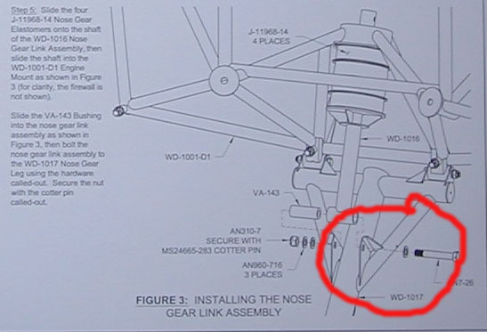 A couple of weeks ago while I was working on my nose wheel fairing, I discovered a crack in my WD-1017 (see pictures). I had inspected the 1017 before I installed it last fall and other than pushing the airplane in and out of the hanger once, it has just sat there. You might want to inspect yours. I returned it to Vans and they have provided me a new one.