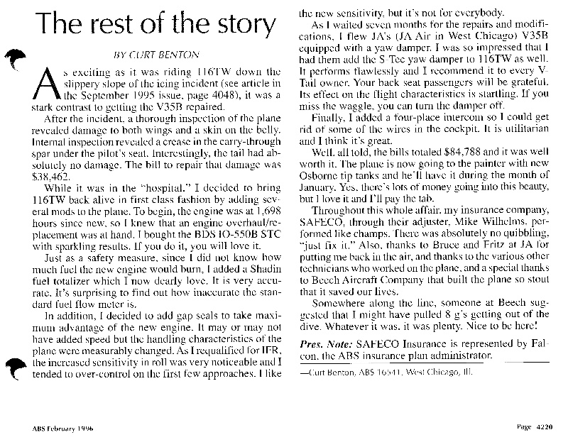 refer to it regarding our aircraft. Bonanzas are extrememly "clean"