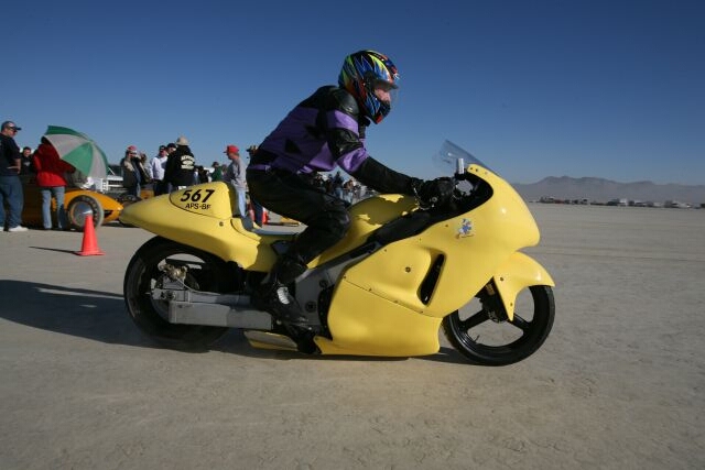 from El Mirage after running his 500hp Suzuki at 229.844mph beating