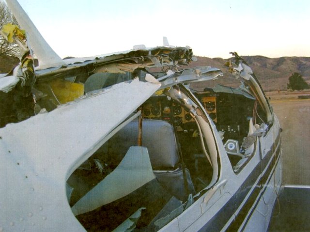 damage in the photos was a mid-air collision with an aircraft. See