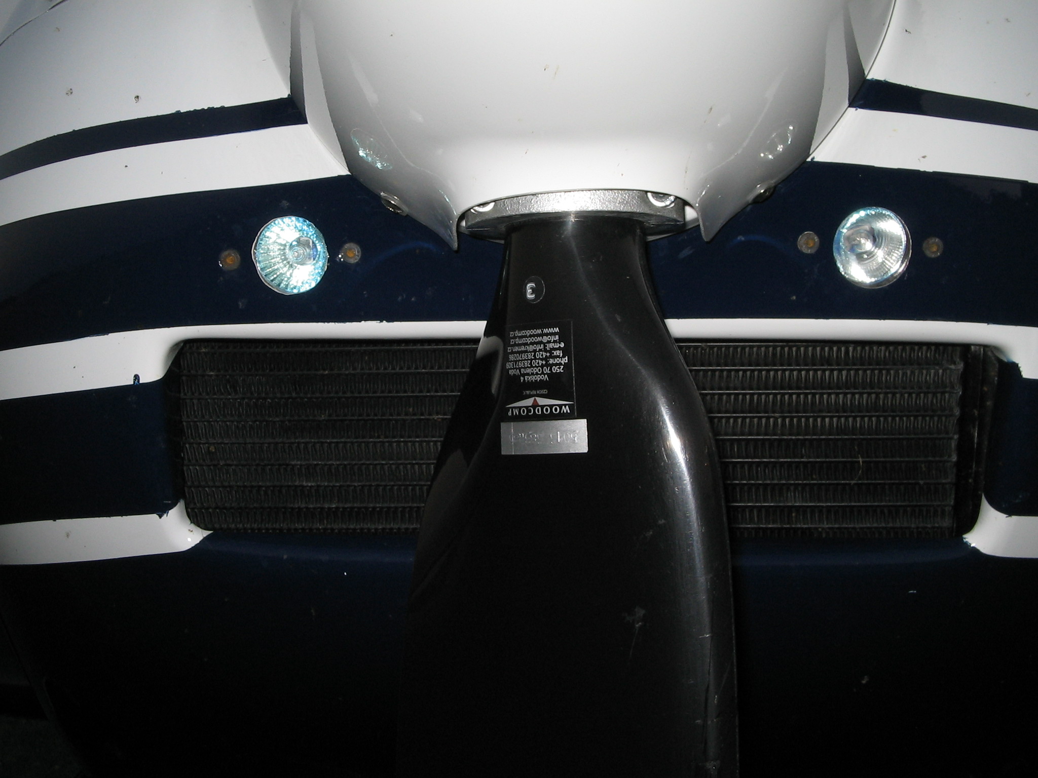 on this subject i mounted 2 12volt Halogen lights in the lower engine cowl good light (also possible to go for LEDs) and very light. housing for lights was made from Acrylic Plastic.