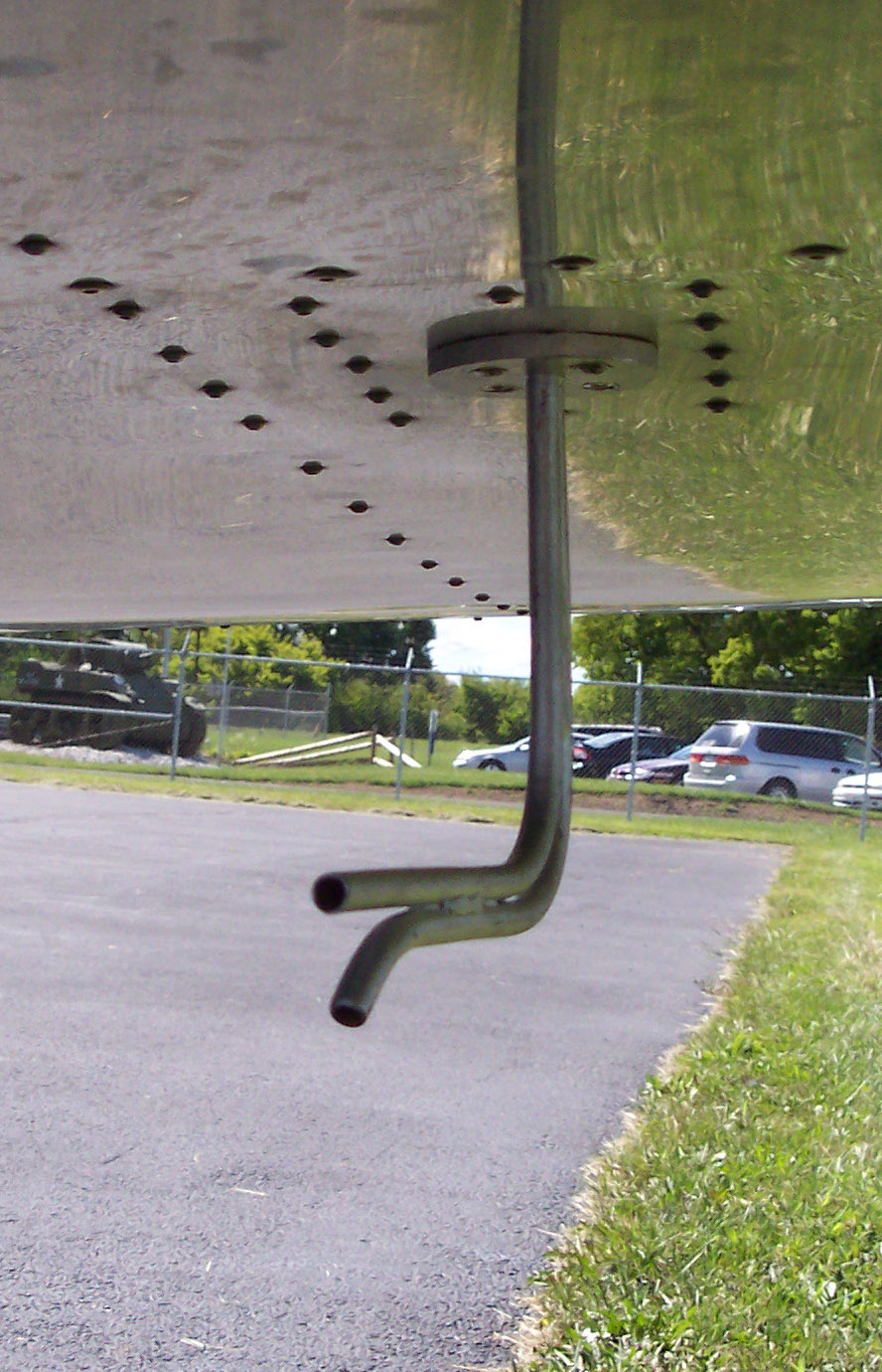 The pitot tube is at a right angle to the support tube and the