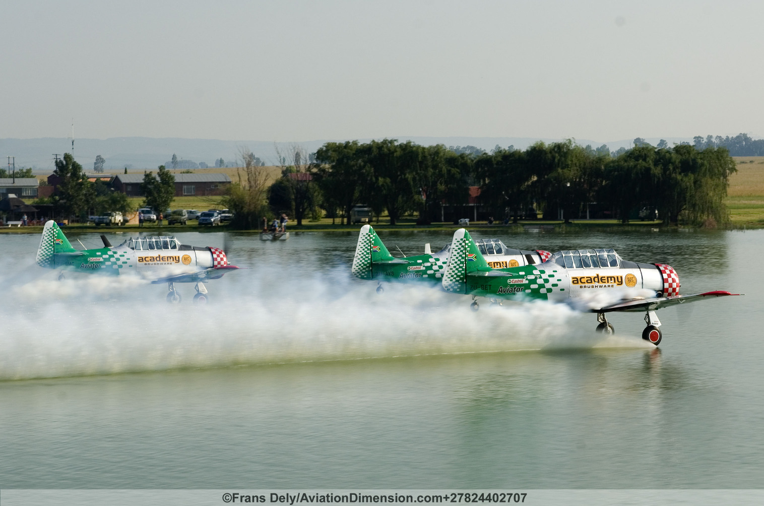 Aircraft from The Flying Lions Aerobatic Team waterskiing across the
