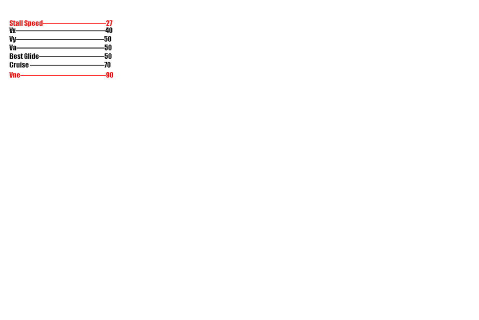 | Quote: | | How does one figure VX in a firestar. I need it for the sheet that I will turn in when I have completed my 40 hour test flights. WAG do? |