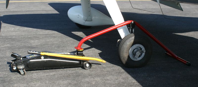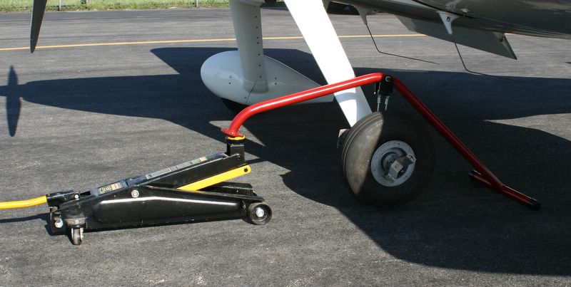 Since the jacking position is between the cg and tail wheel, it takes load off the tail wheel and will ultimately lift if off the ground.