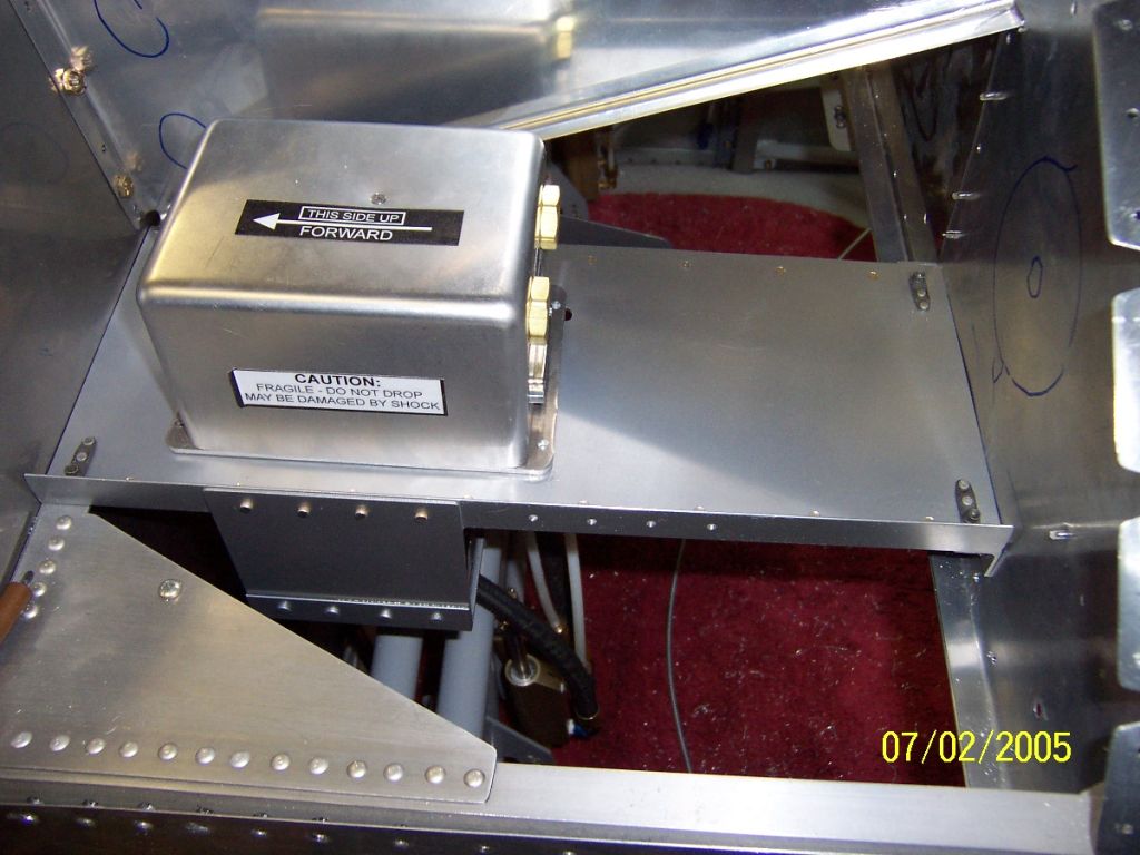 Here's by dual battery installation. I've built a pair of equipment shelves that attach to the Van's standard battery/ bellcrank center plate.
