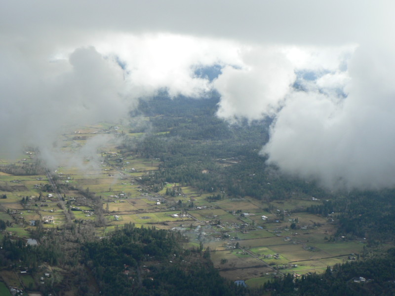 I finally found the top at 9000ft. It was quite cold but the view was worth it. There was an ocean of clouds in every direction. I could hear some air traffic at Roseburg (65 miles to the North) so there must have been a few other holes, but none close. The bright sun on those perfectly white clouds was breath taking. The top of Mount Shasta (95 miles to the South) was sticking up like an island. I floated around and took pictures for half an hour or so and then retreated to warmer air down below. I had a blast doing steep turns around some small isolated puffs and had to bust through a few of course. Flights like these are what my little Kolb is all about. I flew for one hour and burned just over three gallons of gas. I'll post a few pictures below.....