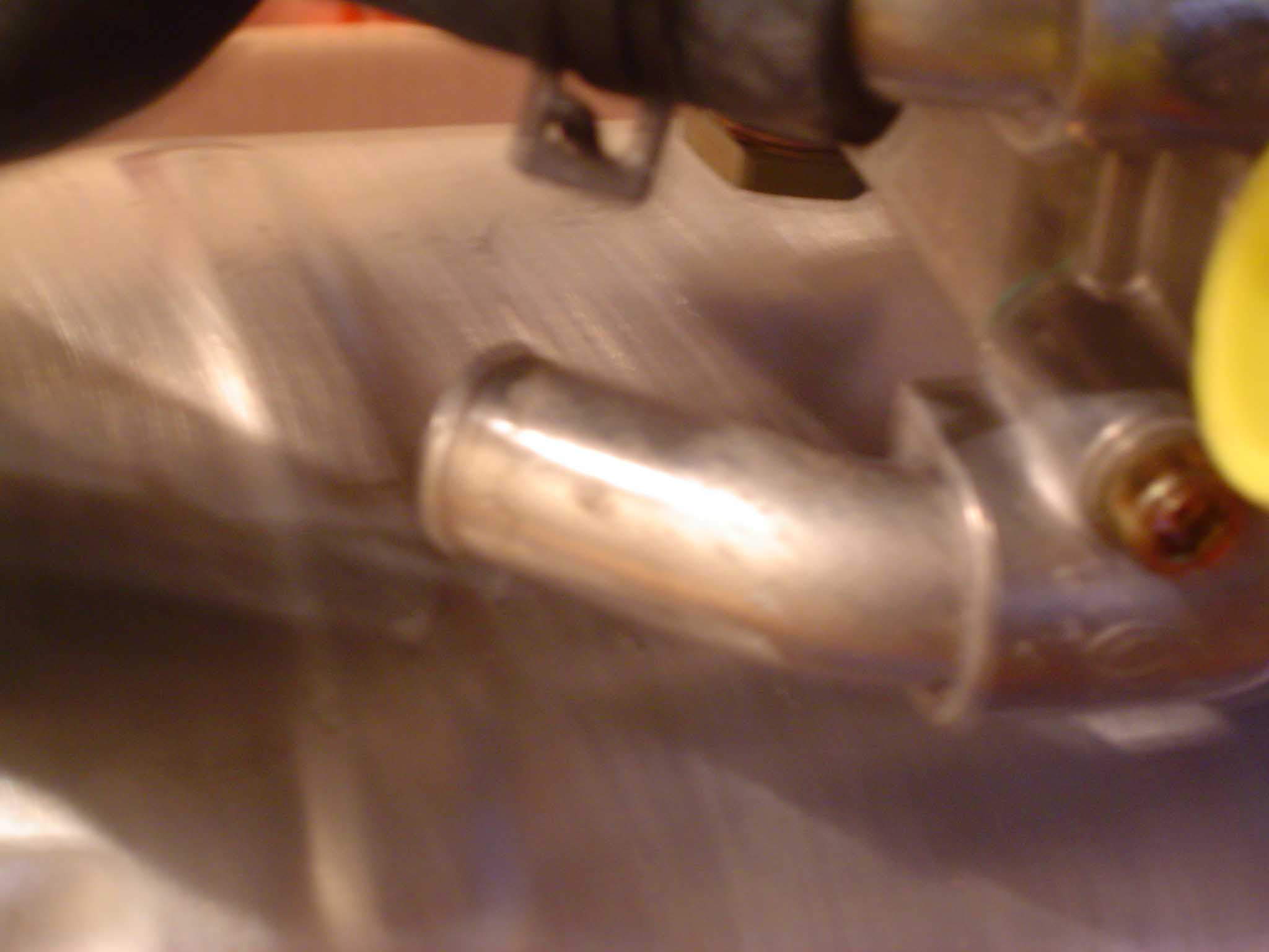 Bud, the bent nozzles from the water pump housing seem to already have a bend of around 40 degrees, certainly not 80 degrees - 2 photos attached with the standard Europa XS exhaust system temporarily fitted. The hose from the lower nozzle is disconnected. The clearance between the end of the lower bent nozzle and top of the silencer is 15 mm - is that sufficient? To increase the clearance a bit it seems I would have to rotate the bent nozzle upwards a bit.