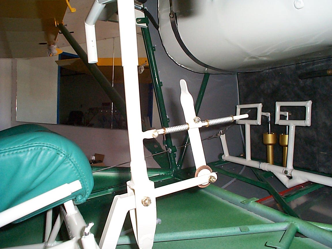 between yer legs... That style was in the Tailwind I got to fly.... But
