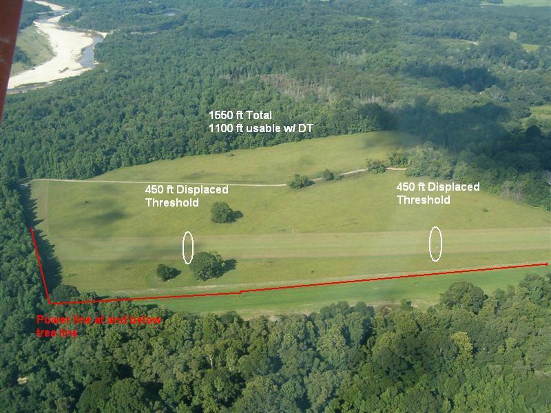 This field will be a challenge if you are used to landing on 2500 to 5000 foot runways all the time. It can be visually intimidating if you aren't used to it and up on your short field techniques. Start practicing if you are rusty on your short field techniques. We don't fly with passengers in the summer. Short-soft field and high density altitude (damn hot and humid) doesn't leave a lot of safety margin for two person operation.