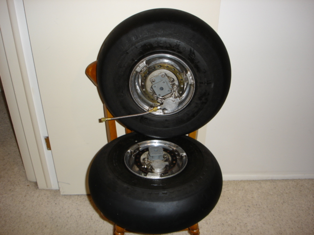 FOR SALE: $175.00 FOB Ogden, UT - One set of 20x700x8 Cheng Shin tires with tubes mounted on ATV wheels complete with Matco brakes and Grove axels that fit the Grove landing gear. The tires were ATV tires and the knobs were removed.