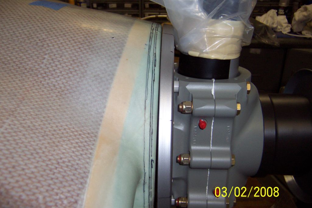 The bottom is about right now but needs to be trued up a bit with some build on the outside and then the whole cowl face fitted parallel to the spinner. This doesn't seem like nearly as much work as cutting the whole face off, trimming, and then glassing back. Other than taking a little patience, I can't see any reason why it won’t work. I don't have a lot of glass experience yet but I think the epoxy / long hair / layer of glass on the inside should be as strong as the original when it's sanded back a 1/4. The last picture shows how much needs to come off on the top. ( 1/4 inch paint paddle)