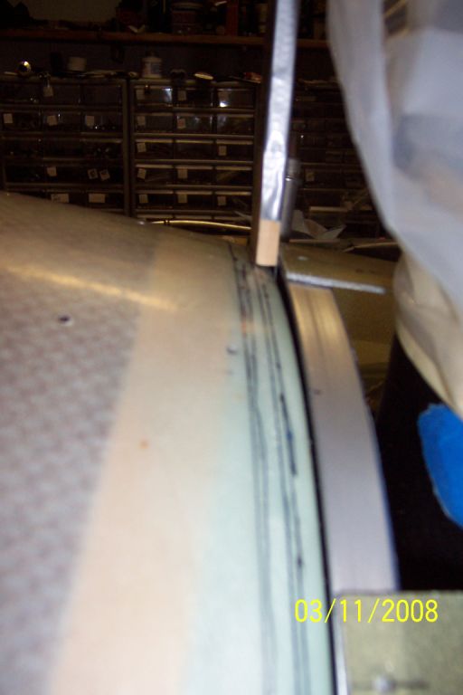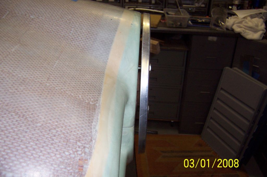 The bottom is about right now but needs to be trued up a bit with some build on the outside and then the whole cowl face fitted parallel to the spinner. This doesn't seem like nearly as much work as cutting the whole face off, trimming, and then glassing back. Other than taking a little patience, I can't see any reason why it won’t work. I don't have a lot of glass experience yet but I think the epoxy / long hair / layer of glass on the inside should be as strong as the original when it's sanded back a 1/4. The last picture shows how much needs to come off on the top. ( 1/4 inch paint paddle)