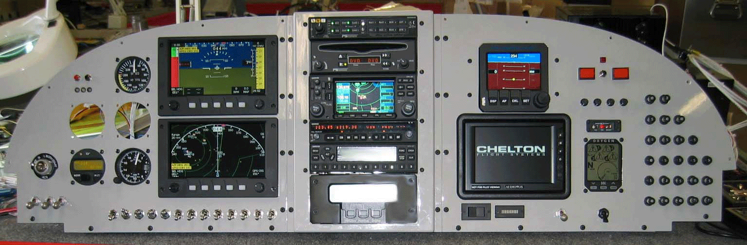 I did not rivet the forward section onto the fuselage and thus was able to mount the panel in the forward section on the work bench. From there I decided what had to be cut out and where to place everything. It was easy to mark locations and do the cutouts and then test fit…..many times. I attached everything on the sub-panel with screws and nutplates so that it would be easier to install in the airplane. I also installed a shelf, using nut plates, between the sub-panel and the firewall to hold the AHRS and in the end I mounted on more item to the bottom (dimmers). I found it hard to fit everything in a convenient place and thus had to make another shelf type extension for the relays, terminal board and manifold pressure sender. In the end it is not to much of a maintenance nightmare, I had to test that theory twice so far. Test number three is coming up next week………..going to change some wiring in the GRT and 430.