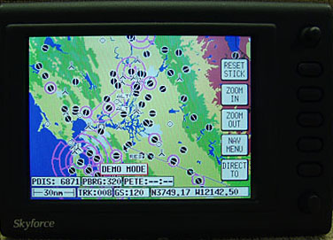 I am selling a new-in-box Skyforce Skymap IIIC full color GPS moving map with Topo. The database and firmware were just upgraded 05/2008. Includes a Panel Mounting bracket, GPS Antenna, cigarette lighter adapter, carrying case, and all manuals. Brand new, never used. No scratches. The pictures below are of the actual unit. The LCD color display on the IIIC is extremely nice and very bright. Gives altitude readout. RS232 output.