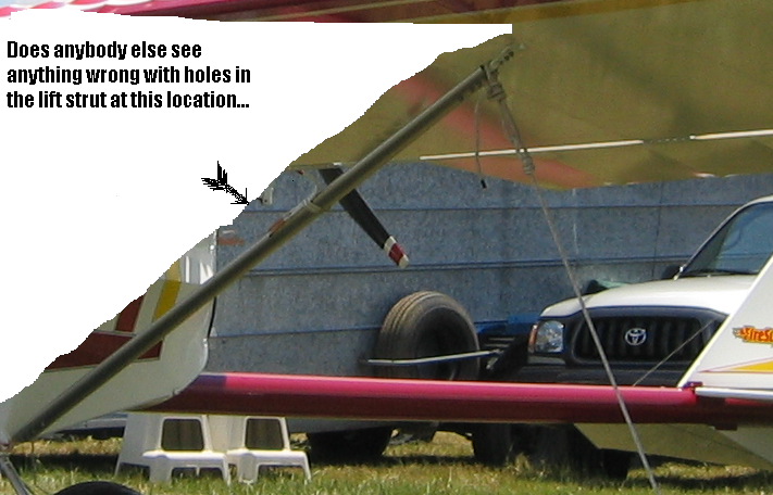 Here's a picture of two holes in a lift strut....I'm looking for YOUR opinion if this looks like trouble waiting to strike....or are these streamline struts