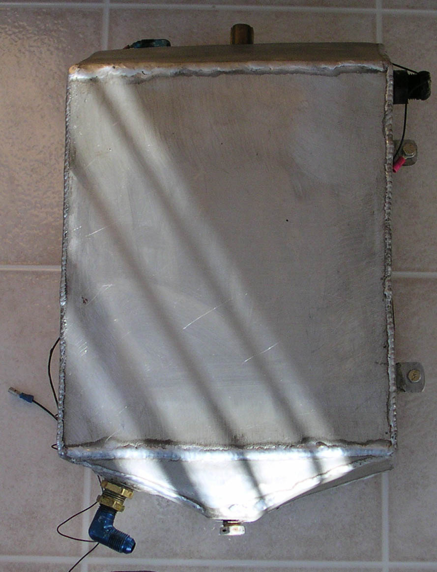 The front of the tank has the wing feed connection and a sight gage with a