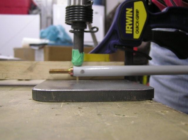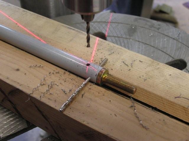 • Drill the #40 pilot hole with the rod end in place. Care must be taken to ensure that the rod end does not "wander" out of the tube when drilling. Prevent this by holding the rod end in place by hand when drilling. I also clamped the tube in the V channel to ensure it did not move.