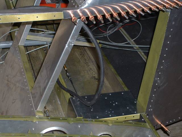Longeron run. The cable is temporarily mounted using Adel clamps. I'll eventually use cable ties for a neater installation.