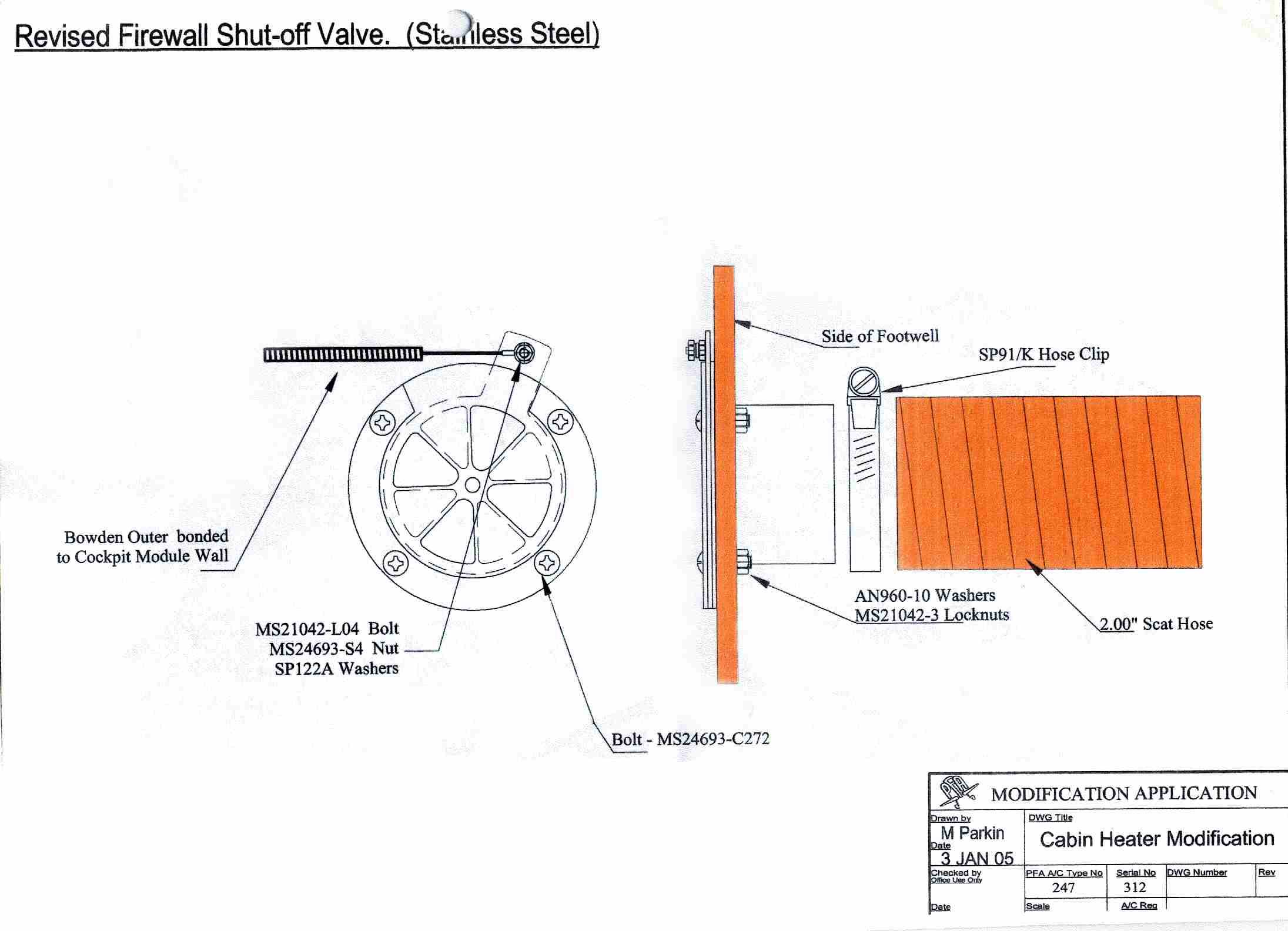 The method of installing is illustrated in the Mike Parkin drawing <Cabin Heat MP.jpg>