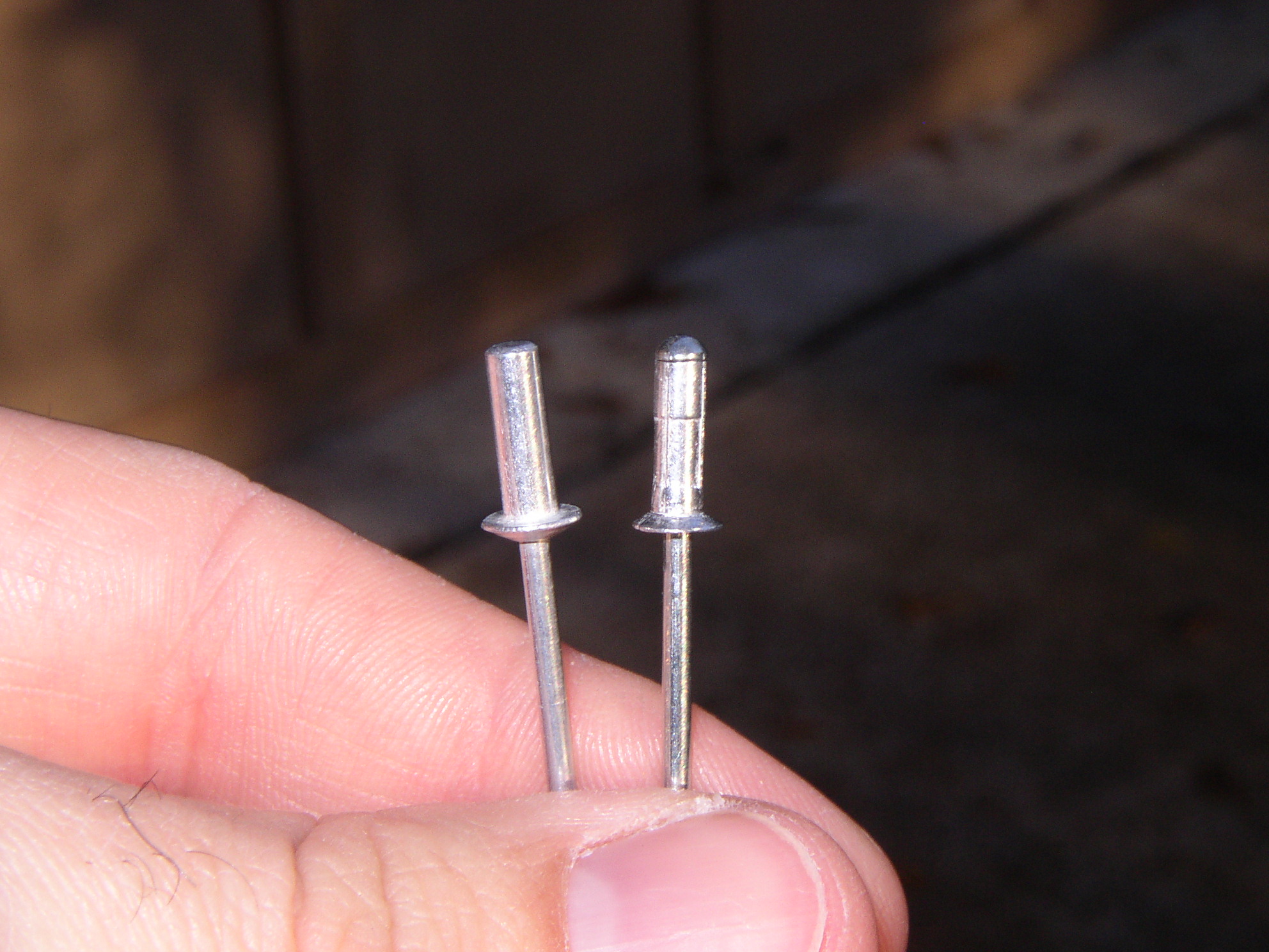 The doors were supplied with 70 A5 rivets, 30 A4 rivets, and 35 rivets I've never seen before (in picture on left). They appear to be 1/8", but I'm wondering if they're specifically made for riveting lexan. What the heck are these, and where do I use them?
