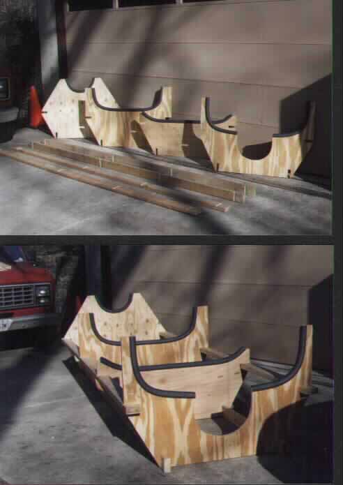 As far as jigging, first, I have a lot of room in my shop for jigging a plane for a couple of weeks. What you described is exactly what can be used. For a Tri-gear jigging the aircraft can be nothing more than a flat table (set the table height at about 20 inches so you can get the gear on) or use one of the on line ideas you have seen before, and secure it to the floor with the fuselage bottom secured to support the center of the module. I have a steel frame but wood will do. Ensure the wing pins are level, and secure the center cockpit section to the table. A simple tail support of ply will keep the tail from sagging. Use a string to make sure the bottom canoe is not sagging. Do your best at installing the rear bulkhead and tail torque tube square and level. I use a 1x4 with a 1.5 inch half moon cut in it to ease one end or both ends of the torque tube dead level if you suspect your canoe is warped, and recheck it is square with the wing bolts. I also mark the floor with the centerline to aid in the install of the gear. Always remember to look ahead to ensure the cross tie bar is clear in the rear when installing the gear. I shim and bond the gear alignment angle to the floor and square the gear and install it. Then rig the wings and install the cross member. (Many tri-gears were put on the gear first, then the wings rigged. Level the aircraft with steel tubes stuck in the end of the axel and secure on blocks bondoed to the floor or if you are careful chock the wheels and use wing jigs to ensure the wings are straight...)