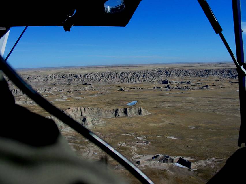 Today was another great day and my wife wanted to go fly some place so we went to Cedar Butte in the Badlands to scout some pathways to climb to the top of it. We neglected to take any pictures of it – the top looks like a runway and a crosswind runway – but we took some pictures on our way to Wall Drug for lunch.